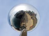 | This sculpture maquette represents the all seeing eye, as it reflects the surrounding environment and is ever changing as one walks by. It is fabricated out of stainless steel. |