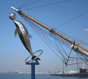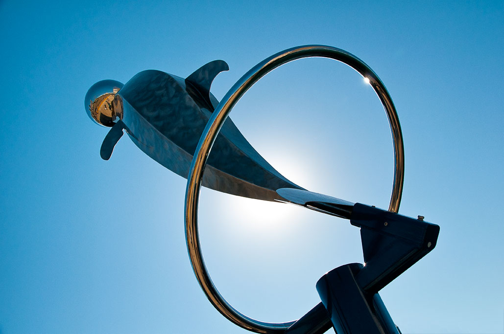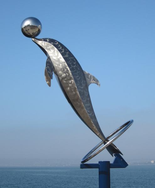 | This sculpture reflects the agility, playfulness and precision which dolphin's are capable of. It is fabricated out of stainless steel. This sculpture was part of the San Diego Urban Trees 7 exhibit. The sculpture is now owned by the Wolfstein Sculpture Park, located at Scripps Memorial Hospital in La Jolla, CA (click on images to enlarge) |
