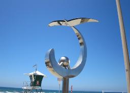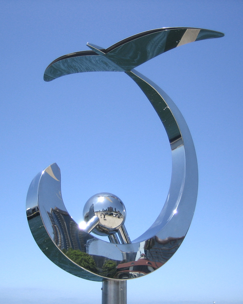 | This abstract sculpture was inspired by some of the common wildlife found along the California coast. It is fabricated out of highly polished stainless steel and thus reflects the surrounding environment . It was on display for a year along the San Diego Embarcadero as part of the Port of San Diego Urban Trees 5 exhibition. The artwork is now owned by the Port of San Diego and located on Imperial Beach at Dahlia Ave. (click on images to enlarge) |
