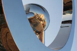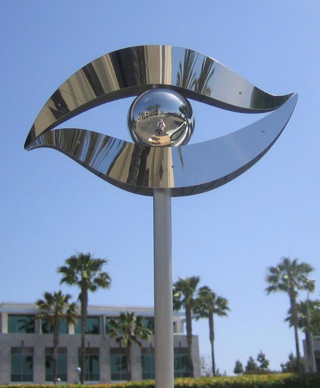 | This sculpture maquette represents the all seeing eye, as it reflects the surrounding environment and is ever changing as one walks by. It is fabricated out of stainless steel. |