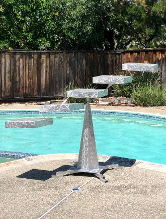 | "Stepping Stones" This sculpture reflects a series of stepping stones that are somewhat treacherous. It moves with the wind currents and is made of aluminum and stainless steel. Base still to be designed. |