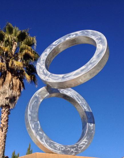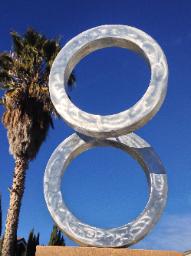 | "Rings" This sculpture (each ring to be 8 feet in diameter) is designed to slowly change its position throughout the day, moved by wind currents. |